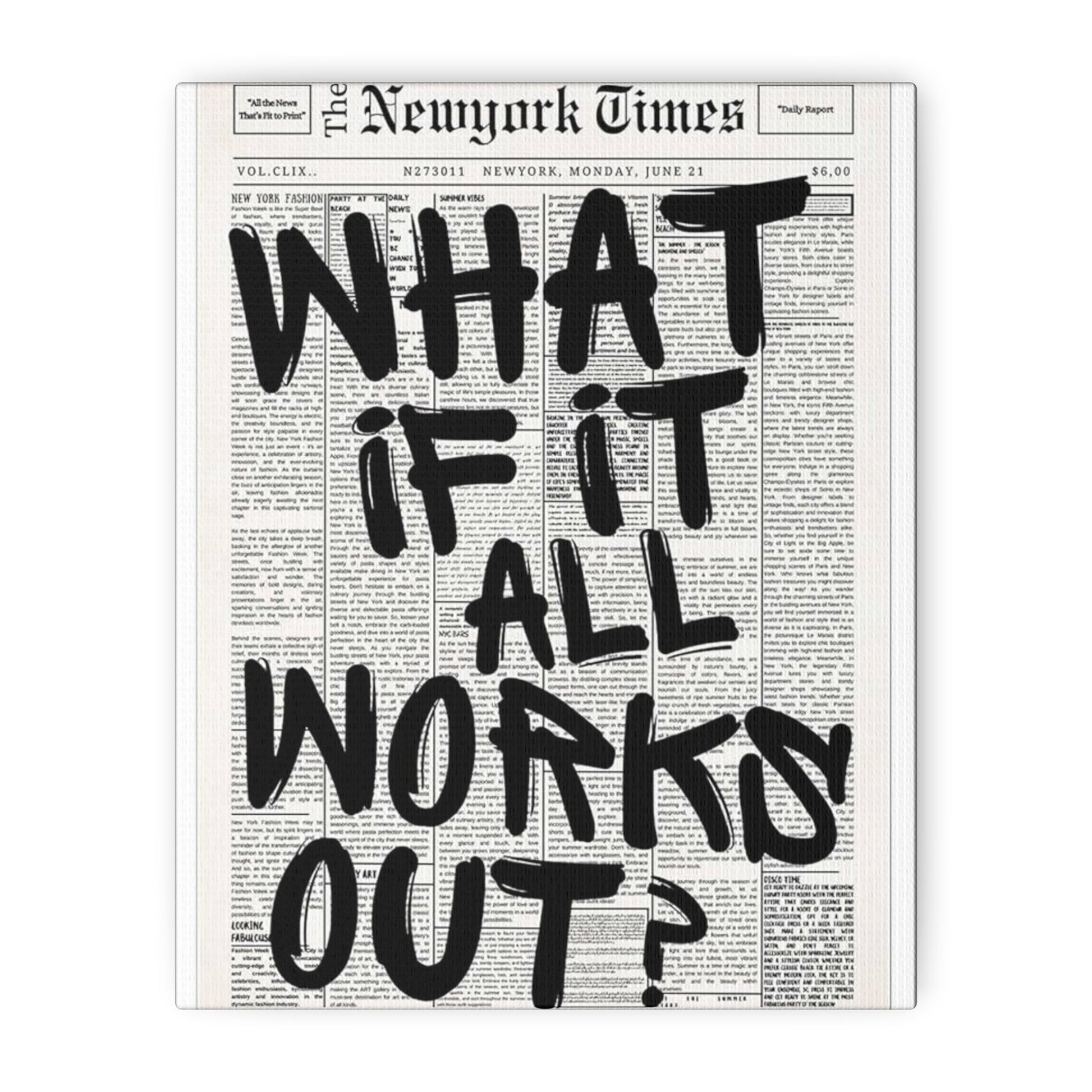 A motivational poster featuring the uplifting reminder “What If It All Works Out?” This piece encourages optimism, belief in yourself, and trust in the process. Perfect for creating a calm, positive atmosphere in your bedroom, office, study corner, or living space.